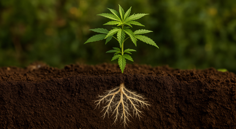 Cannabis roots, in symbiosis with beneficial fungi, form an invisible network of biological energy that fuels growth, strengthens the plant, and maintains the natural balance of the soil.